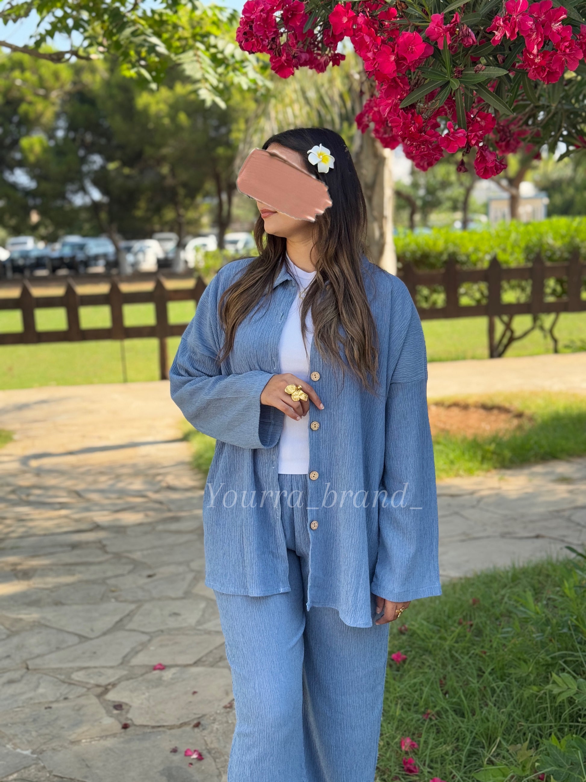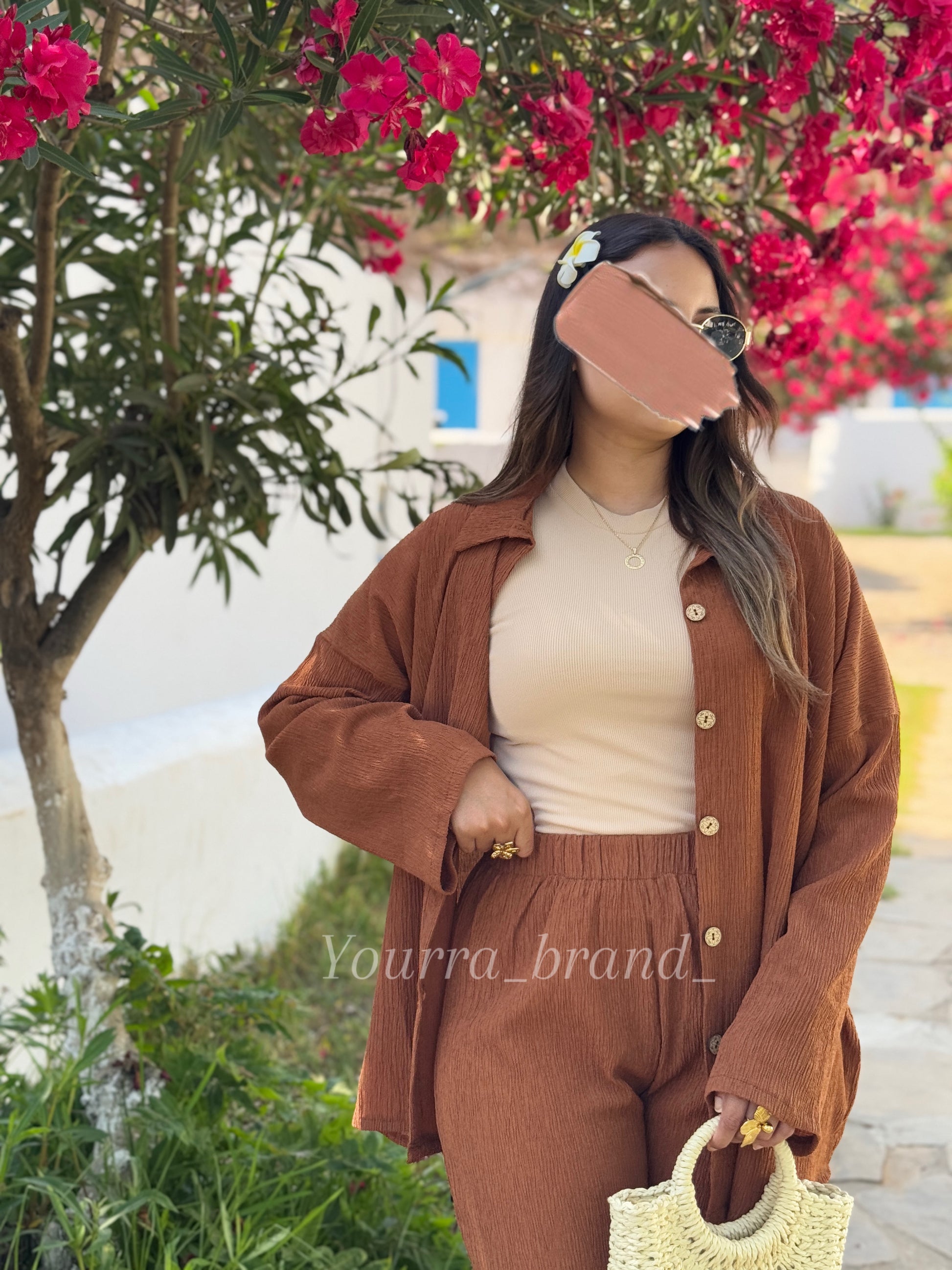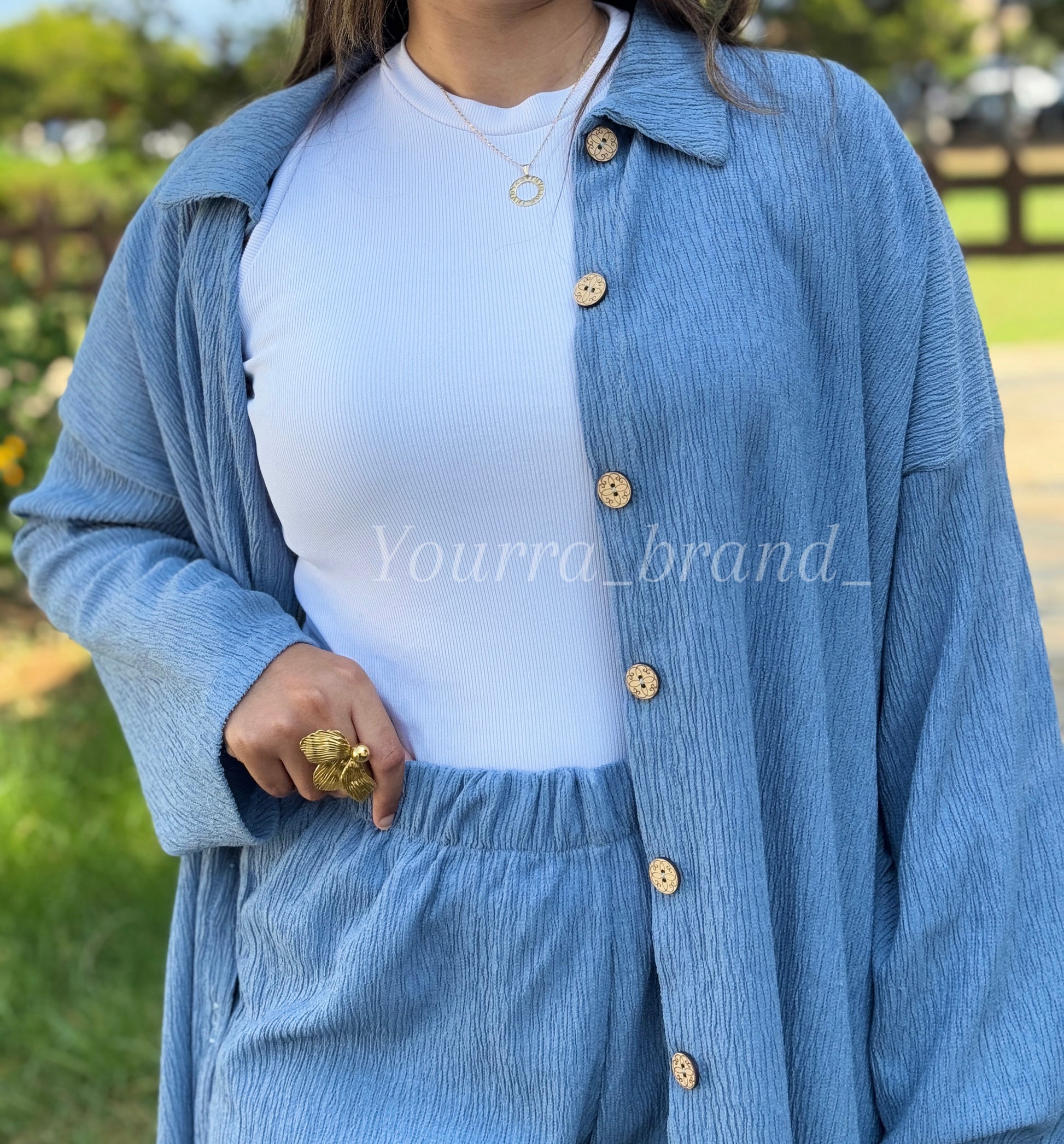 Ensemble 2 pièces ( chemise + pantalon)🩵🤎